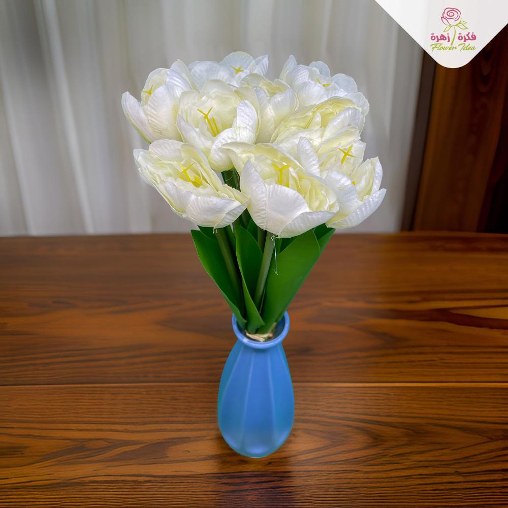 جمال زهرة التوليب الخلاب في تصميم دائم يضفي لمسة من الأناقة والأنوثة على منزلك. بتفاصيلها الغنية وألوانها الهادئة، توفر التوليب الصناعية جواً من الفخامة والرومانسية يدوم طوال العام دون الحاجة إلى رعاية.
